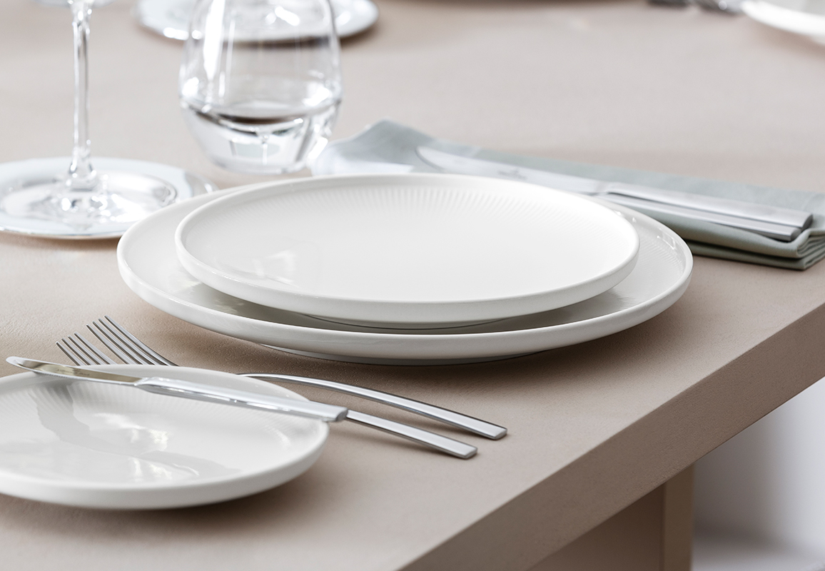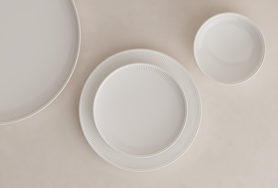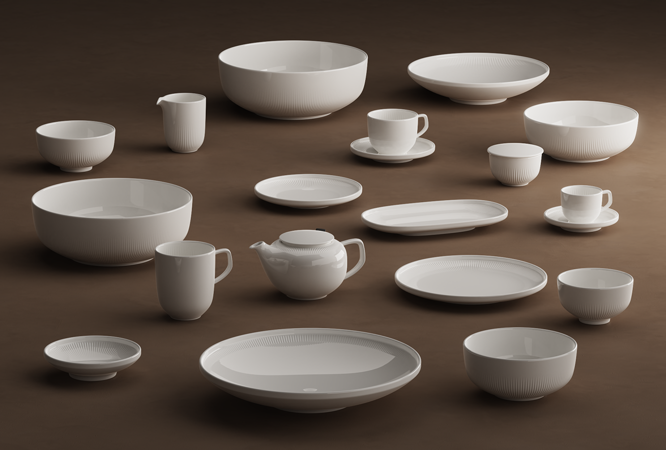 AFINA is a refined, yet functional tableware collection that fulfills the needs of private and hospitality use. With a total of 32 items, including plates, bowls and cups in different sizes as well as stackable shapes, AFINA has been designed as a complete range for every occasion.