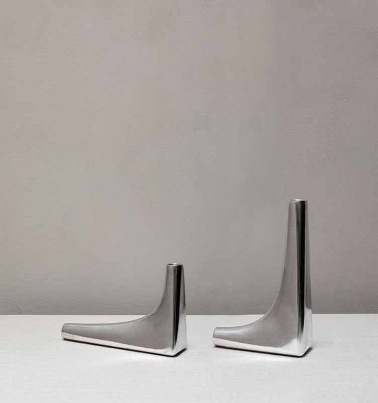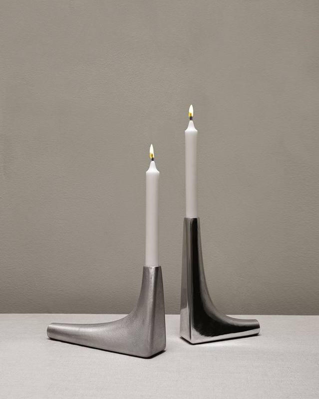 ÂNCORA is a candleholder in sandcast aluminium, handcrafted in Northern Portugal. Its dual cavity form enables to display the candleholder in two ways with a simple rotation.