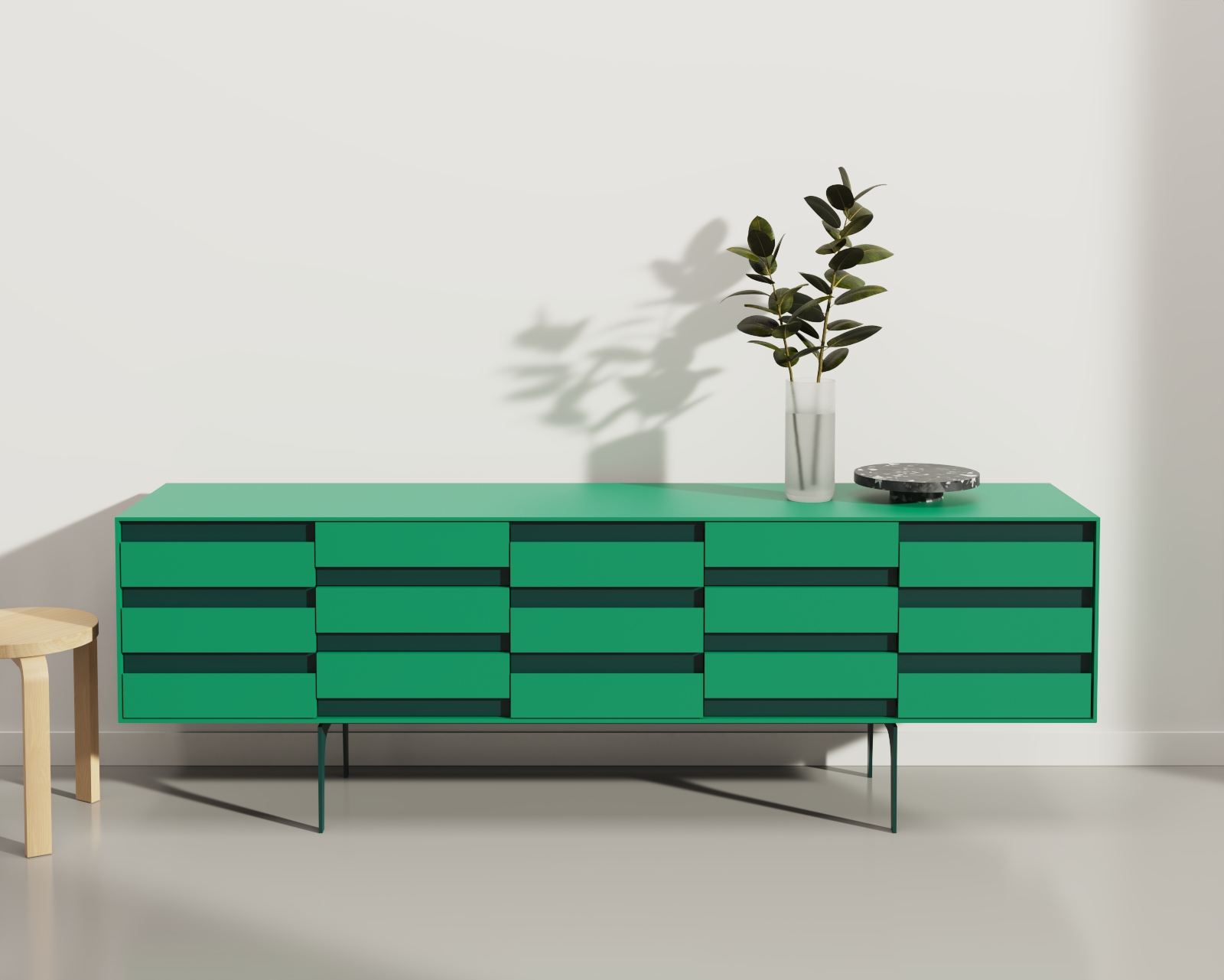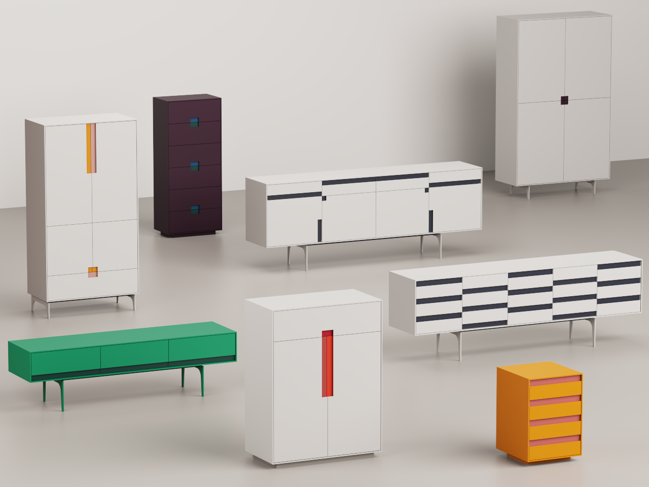 CANVAS is a versatile furniture line, offering an array of design possibilities for sideboards, lowboards, highboards, consoles, and cabinets. The diversity in dimensions and customizable fronts, available in various colors and finishes with different handles, allows for unique combinations. The design flexibility extends to the base, which can be chosen from three gridsizes or wall-mounted. It is envisioned as a blank canvas, inviting artistic exploration with endless customization options.