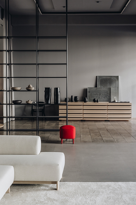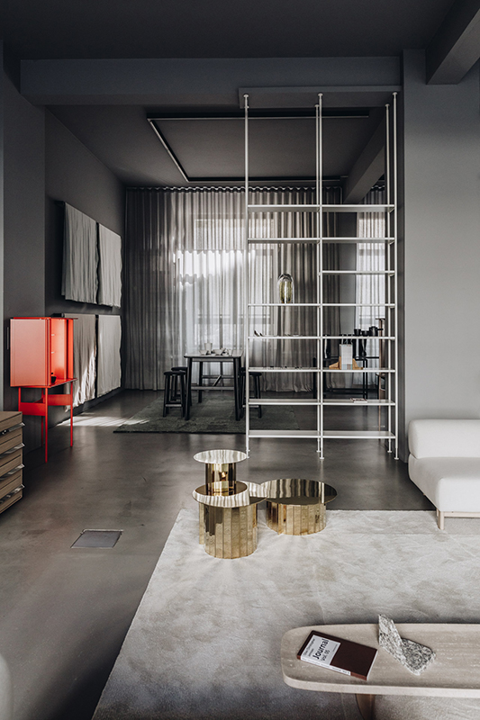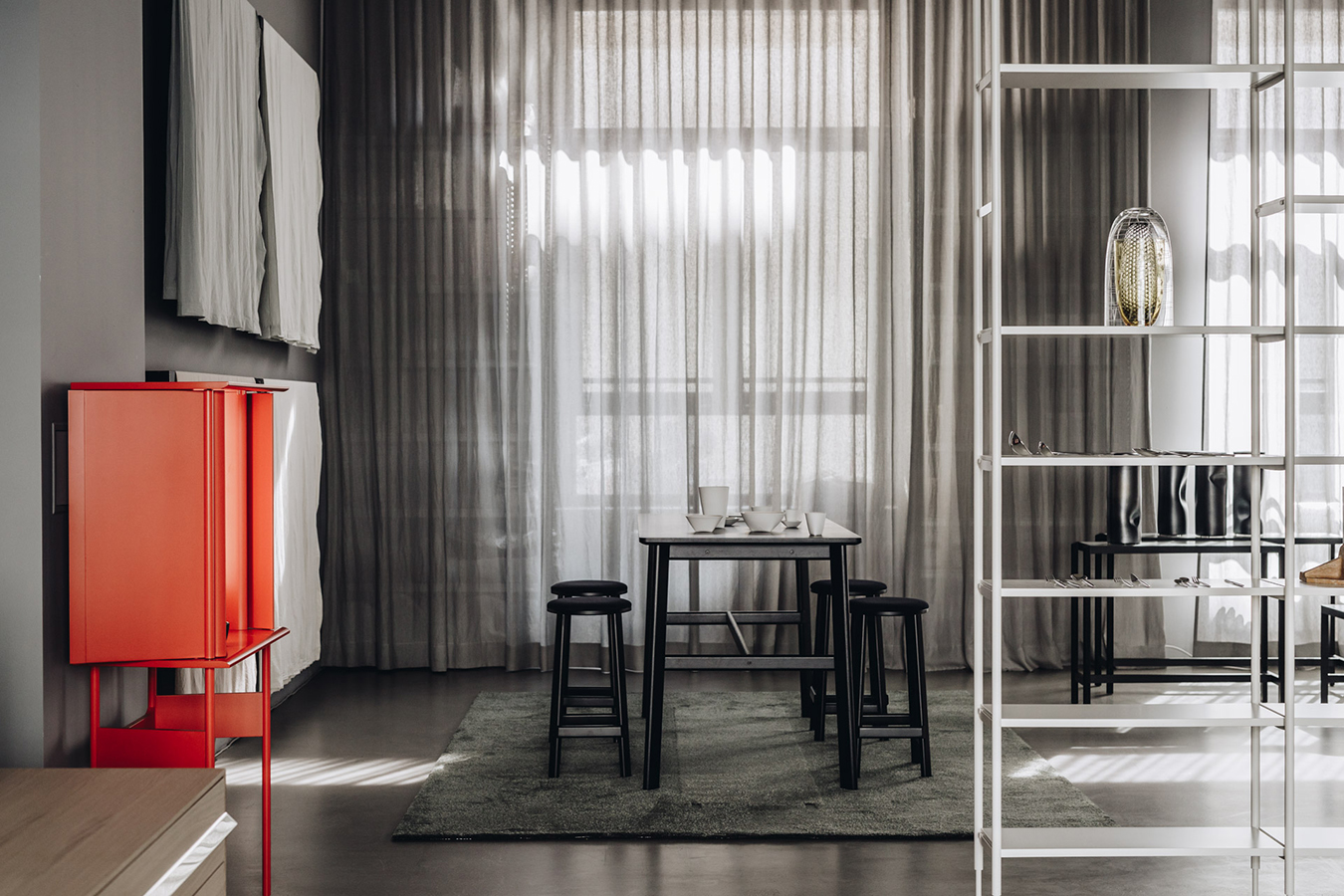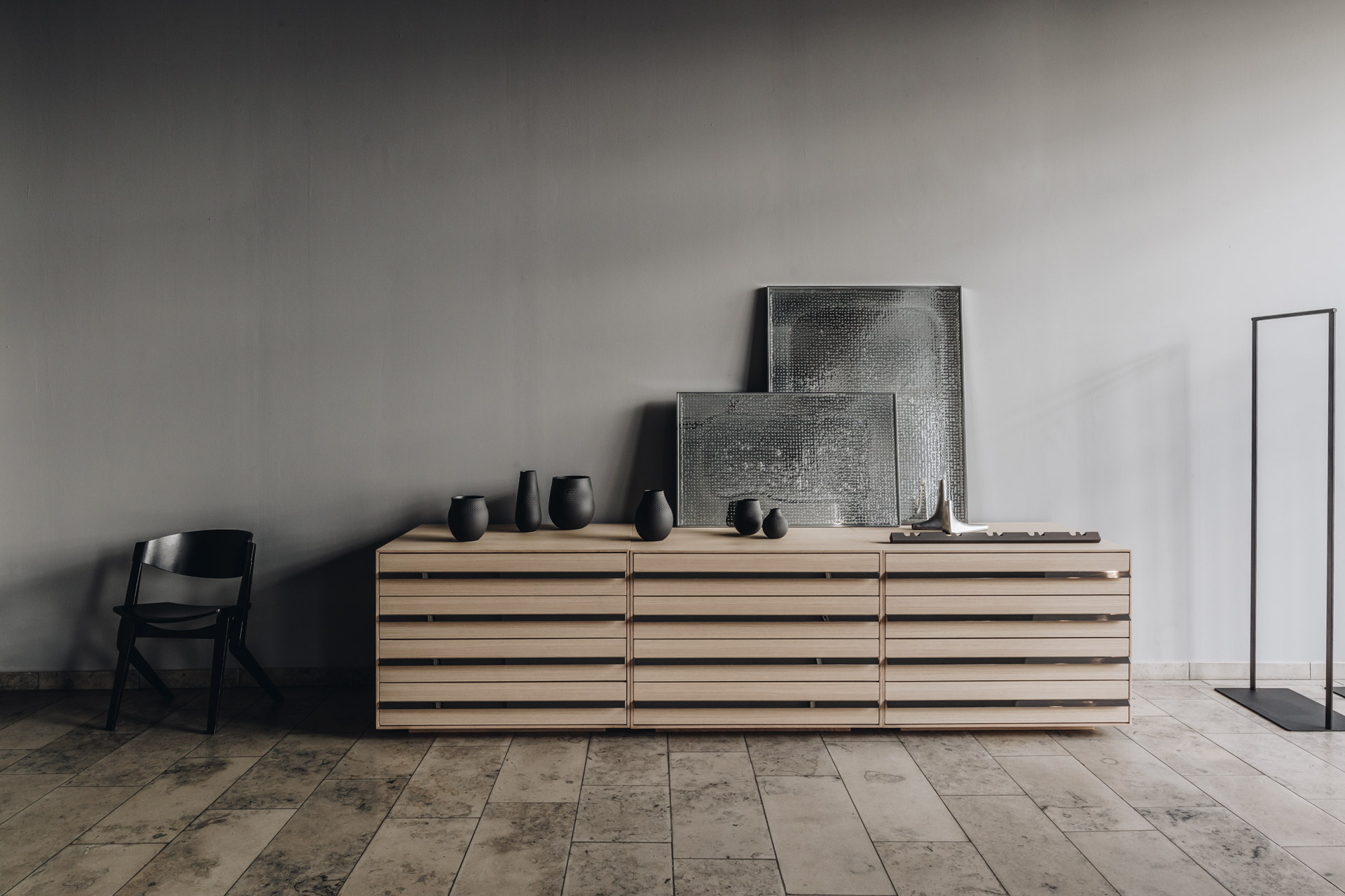 The designs shown range from furniture for living, eating and working, to light objects and interior accessories, such as glass and table ware. Aside from our own label CHRISTIAN HAAS, designs for brands such as 2016/ARITA, KARAKTER, KARIMOKU NEW STANDARD, SCHÖNBUCH, TECTA, THERESIENTHAL and VILLEROY & BOCH are displayed. Key pieces of the exhibition are the jointly produced large scale carpets, span shelves and drawer cabinets.