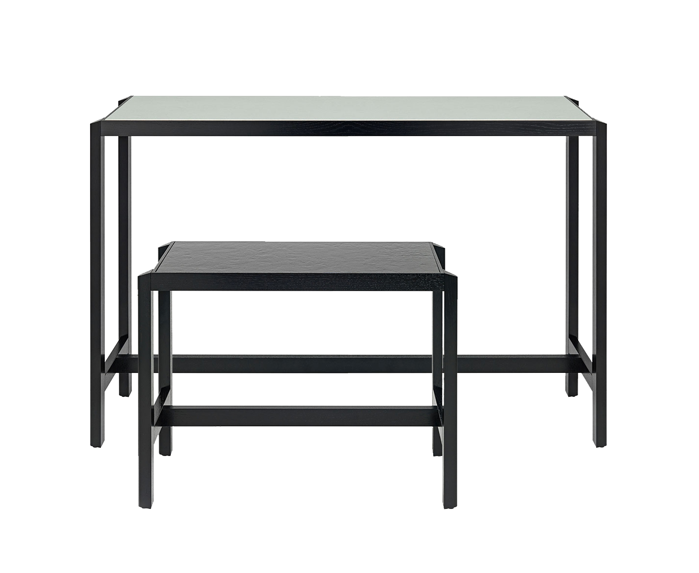 JUSTE has a convincingly purist presence of its own. The two bigger versions are consoles, the smallest version is ideal as a side table to complement sofas and lounge chairs.