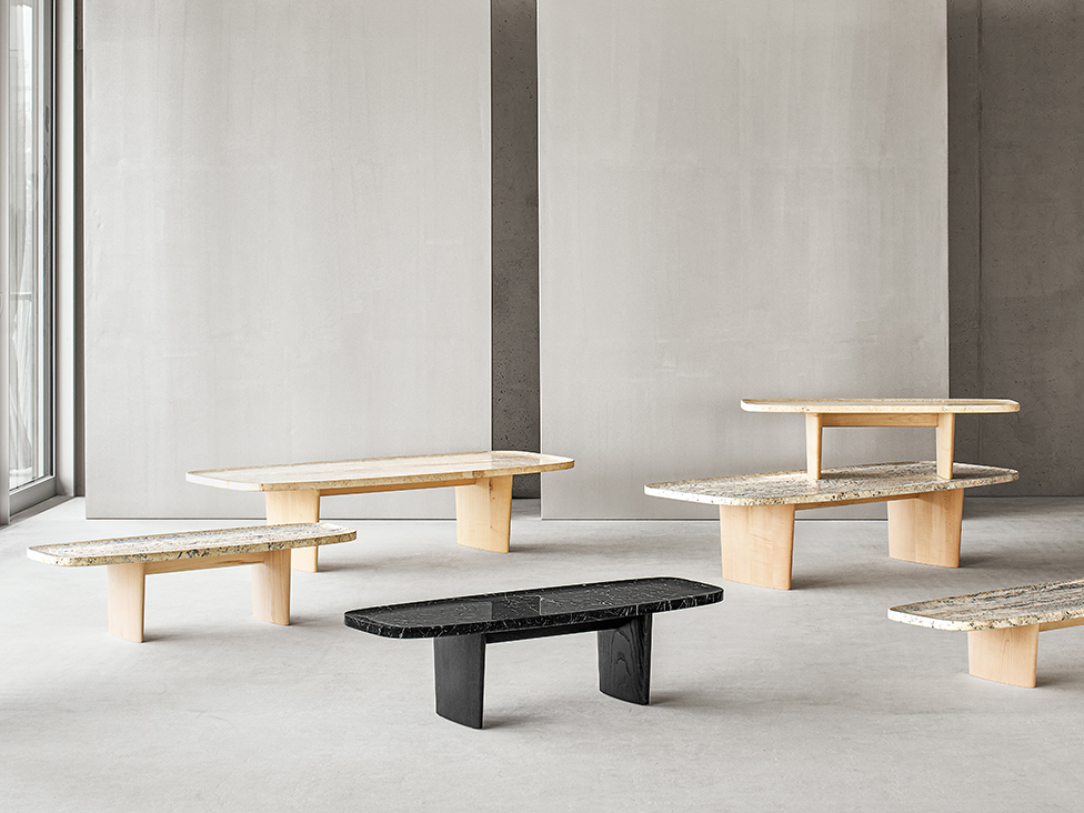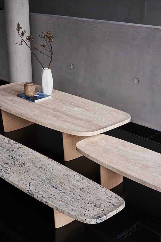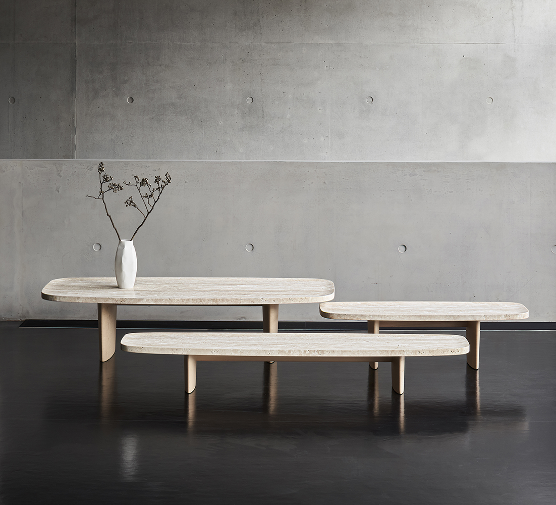 The MATÉRIA series is characterized by its unusual dimensions and aura of tranquillity. When taking a closer look, however, its nearly monochromatic appearance is revealed as an interplay of the porous travertine stone and smoothly finished wood. MATÉRIA evokes an intuitive urge to touch the surfaces, to feel the natural textures. Originally a purely experimental design, it was expanded into a trio in cooperation with ClassiCon. MATÉRIA is available in three different sizes and currently two surfaces. Individually or in combination, the handcrafted low boards rightfully take center stage due to their materiality and reveal the sensual effect of reductionism.