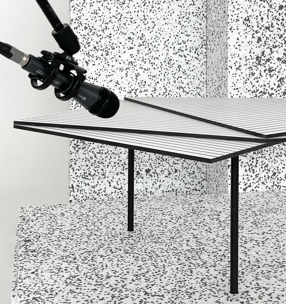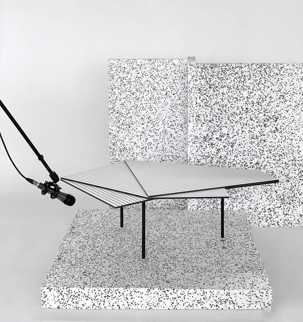 The collection PINSTRIPE consists of four individual tables. The final shape is characterized by folding a white lined paper two times: One regular and one random fold. The result of this exercise are unexpected shapes that enter into dialogue with its surroundings. PINSTRIPE features powder-coated steel legs and a engraved HPL top and is available in various sizes: