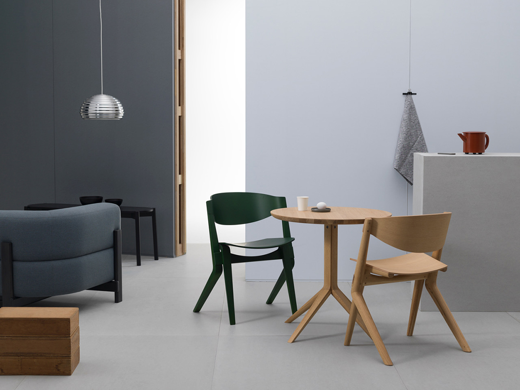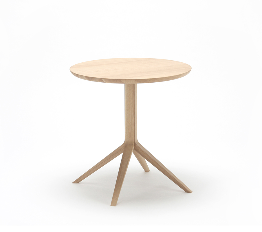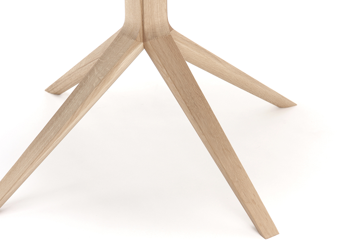 Its design adopts the characteristic details of the SCOUT Chair, yet with its simple and elegant appearance, it easily fits any well-designed chair. With its central leg and compact dimensions, it is suitable for cafes and restaurants as well as small living spaces. The table comes in two heights, a standard dining table height and a low version that makes it also a beautiful side - or coffee table. The SCOUT bistro table is made of Japanese oak wood. Its tabletop is attached to the leg with a solid steel fixture.